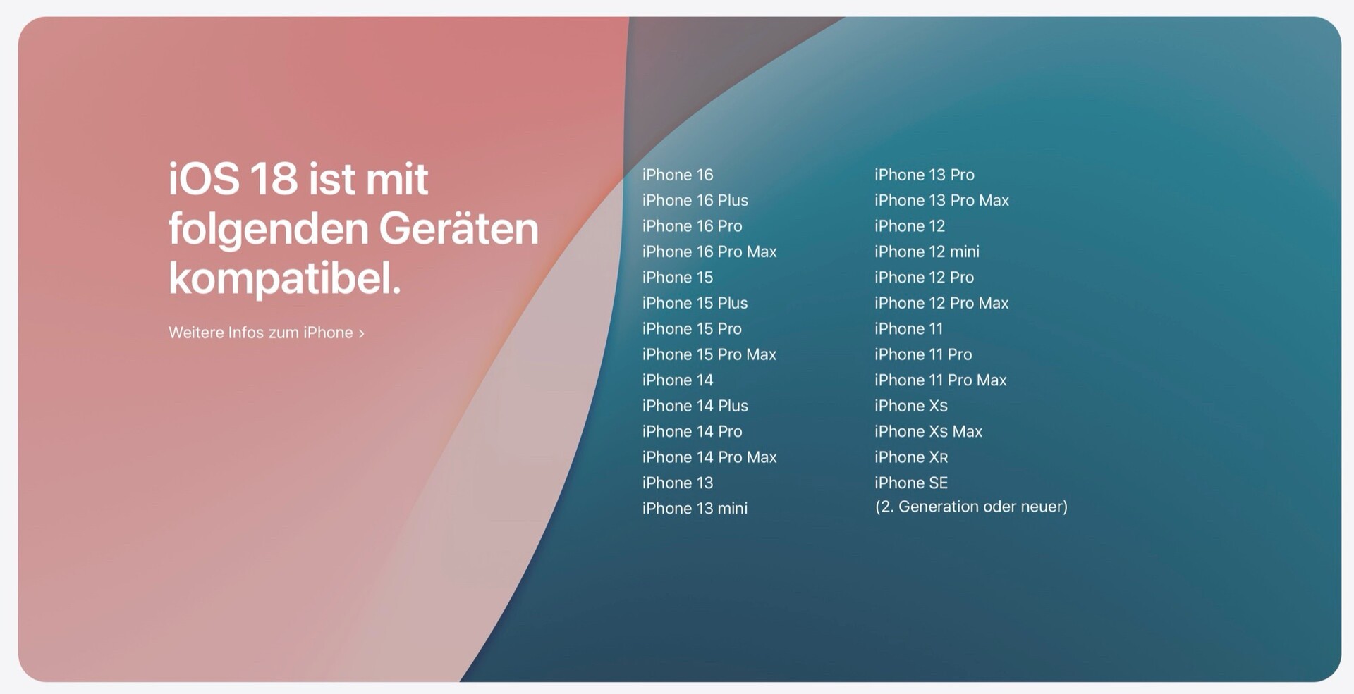 iPhoneSoft konnte von Quellen innerhalb Apples in Erfahrung bringen, mit welchen iPhones das nächste, große Betriebssystem-Update kompatibel sein wird. Demnach läuft iOS 19 auf allen iPhones, auf denen auch iOS 18 installiert werden kann. Damit wären die ältesten iPhones, auf denen das Software-Update läuft, das iPhone Xs und das iPhone Xr aus dem Jahr 2018.