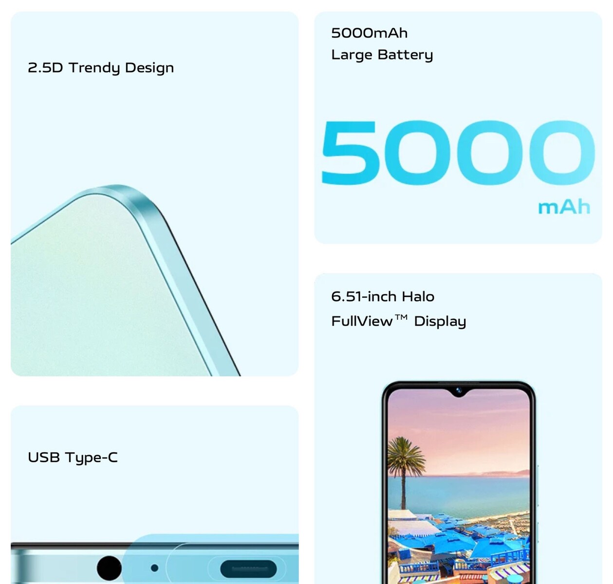 Der Akku bietet eine Kapazität von 5.000 mAh, das Smartphone kann über USB-C mit maximal 10 Watt aufgeladen werden. Die texturierte Rückseite ist laut Vivos Marketing unempfindlich gegenüber Fingerabdrücken. Das Einsteiger-Smartphone verzichtet auf einen Fingerabdrucksensor, Details zum Launch-Datum und zum Preis sind noch nicht verfügbar.