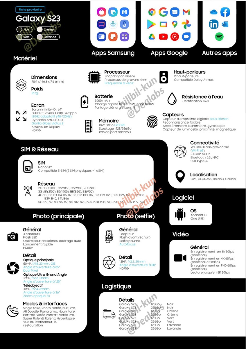 Nachdem ein Händler bereits die Vorbesteller-Boni in Deutschland geleakt hat, haben WinFuture und @Billbilkun die vollständigen technischen Daten des Samsung Galaxy S23 und des Samsung Galaxy S23+ geteilt. Beide Smartphones erhalten ein Upgrade auf den Qualcomm Snapdragon 8 Gen 2, auch in Deutschland gehören Samsung-Flaggschiffe mit Exynos-Chips also der Vergangenheit an.
