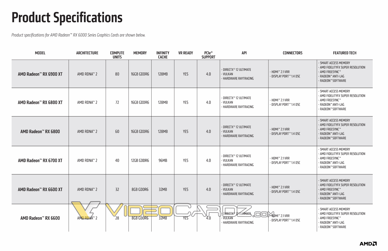 Wie erwartet sind die üblichen Features moderner AMD-Grafikkarten mit dabei, inklusive Smart Access Memory (SAM), Support für AMD FidelityFX Super Resolution (FSR), AMD FreeSync und Radeon Anti-Lag. AMD wird keine Referenz-Grafikkarte anbieten, stattdessen soll die Radeon RX 6600 ausschließlich über Board-Partner erhältlich sein – ein Modell von Gigabyte mit drei Lüftern war kürzlich bereits auf Bildern zu sehen. Details zum Preis sind noch nicht bekannt.