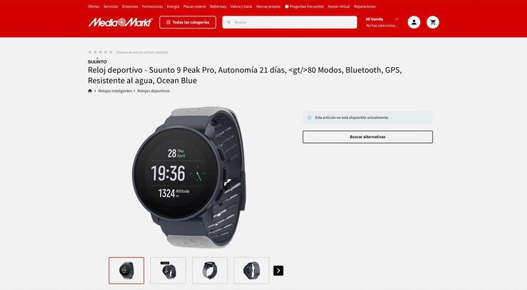 Erst kürzlich hat ein Leaker die meisten Spezifikationen der Suunto 9 Peak Pro und den Preis von 499 Euro verraten, nun zeigt sich das Profi-Modell der Suunto 9 Peak (ca. 450 Euro auf Amazon) bereits bei MediaMarkt Spanien. Der Onlineshop listet die Smartwatch als "derzeit nicht verfügbar", dass das Marketing-Material bereits bei Händlern angekommen ist, zeigt aber reicht deutlich, dass der Launch unmittelbar bevorsteht.