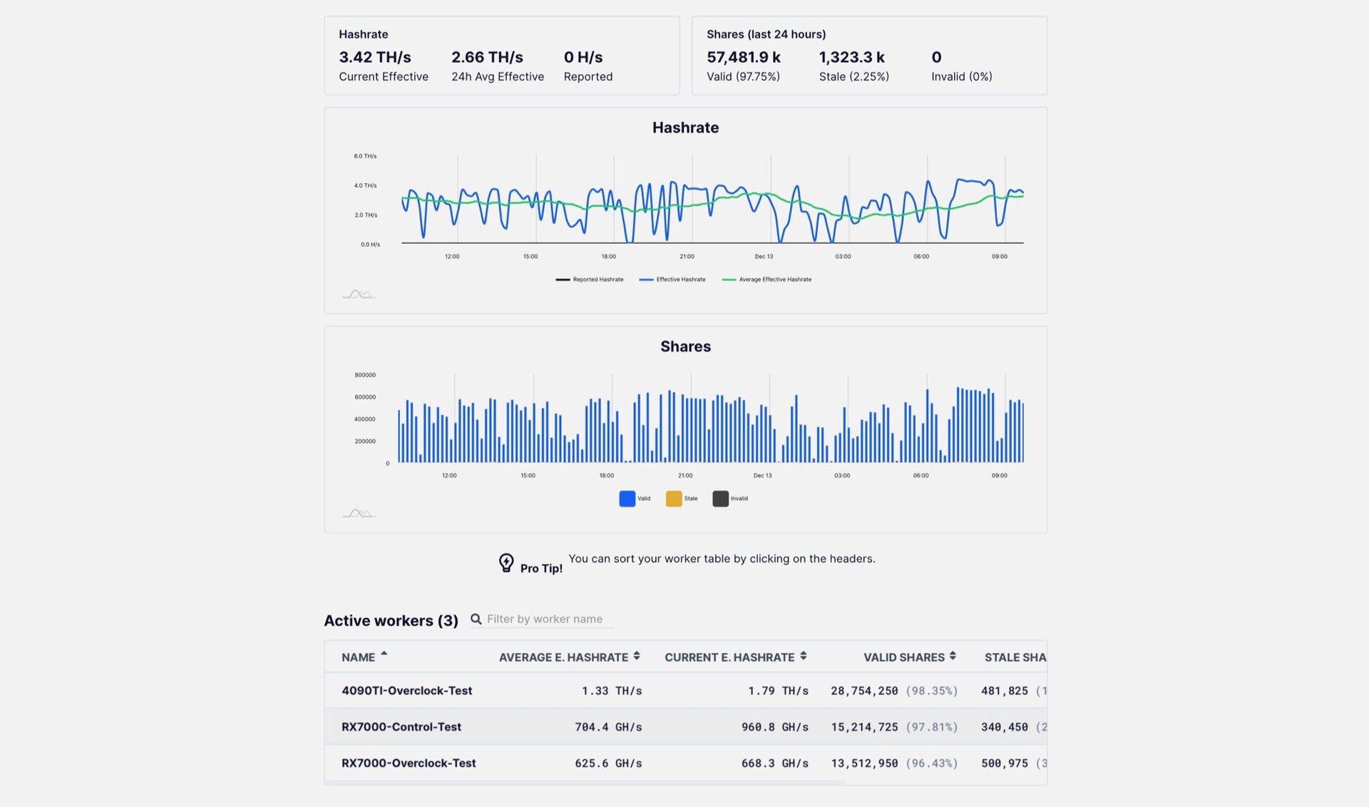 Es könnte sich dabei um einen OEM-Partner von Nvidia und AMD handeln, der die Mining-Performance der Grafikkarten der nächsten Generation testet, bevor diese im kommenden Jahr auf den Markt kommen, es könnte sich aber genauso gut um eine Krypto-Farm handeln, welche diese Angaben fälschlicherweise gemacht hat. In jedem Fall kommt diese Krypto-Farm auf eine eindrucksvolle Spitzenleistung von bis zu 3,91 TH/s, im Schnitt werden 2,47 TH/s erreicht.