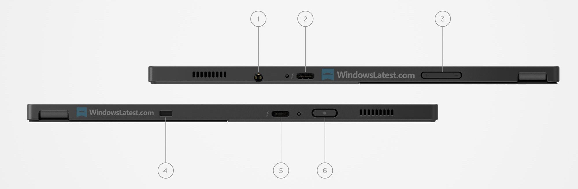 Die Tastatur besitzt ein Trackpad mit Maustasten, einen Trackpoint und einen Fingerabdrucksensor. Das ThinkPad X13 Detachable Gen 1 besitzt sowohl an der linken als auch an der rechten Seite jeweils einen USB-C-Anschluss mit Unterstützung für Thunderbolt. Das deutet darauf, dass ein Intel-Prozessor zum Einsatz kommt, vermutlich ein aktueller Panther-Lake-Chip. Abgesehen davon gibts aber lediglich einen 3,5 mm Kopfhöreranschluss, auf USB-A oder HDMI verzichtet Lenovo komplett.