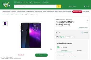Das neueste Smartphone-Modell der Handyserie Motorola One ist auf einer Händlerwebsite in Saudi-Arabien aufgetaucht. Inzwischen hat der Retailer die offenbar vorschnell veröffentlichte Produktseite für das Motorola One Macro zwar wieder entfernt, das Bild des Moto One Macro-Handys und einige der Spezifikationen des Moto One Macro machen trotzdem die Runde.