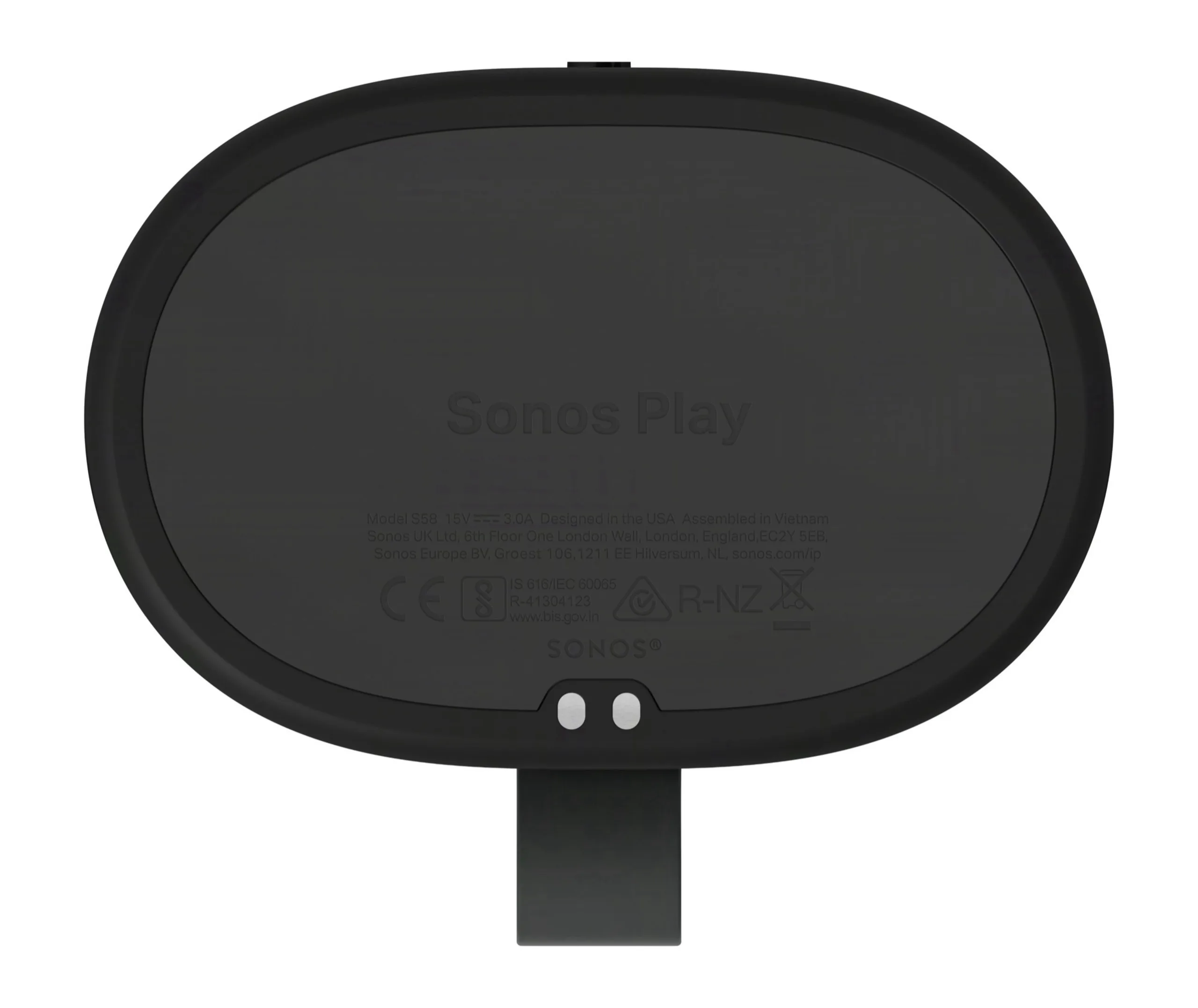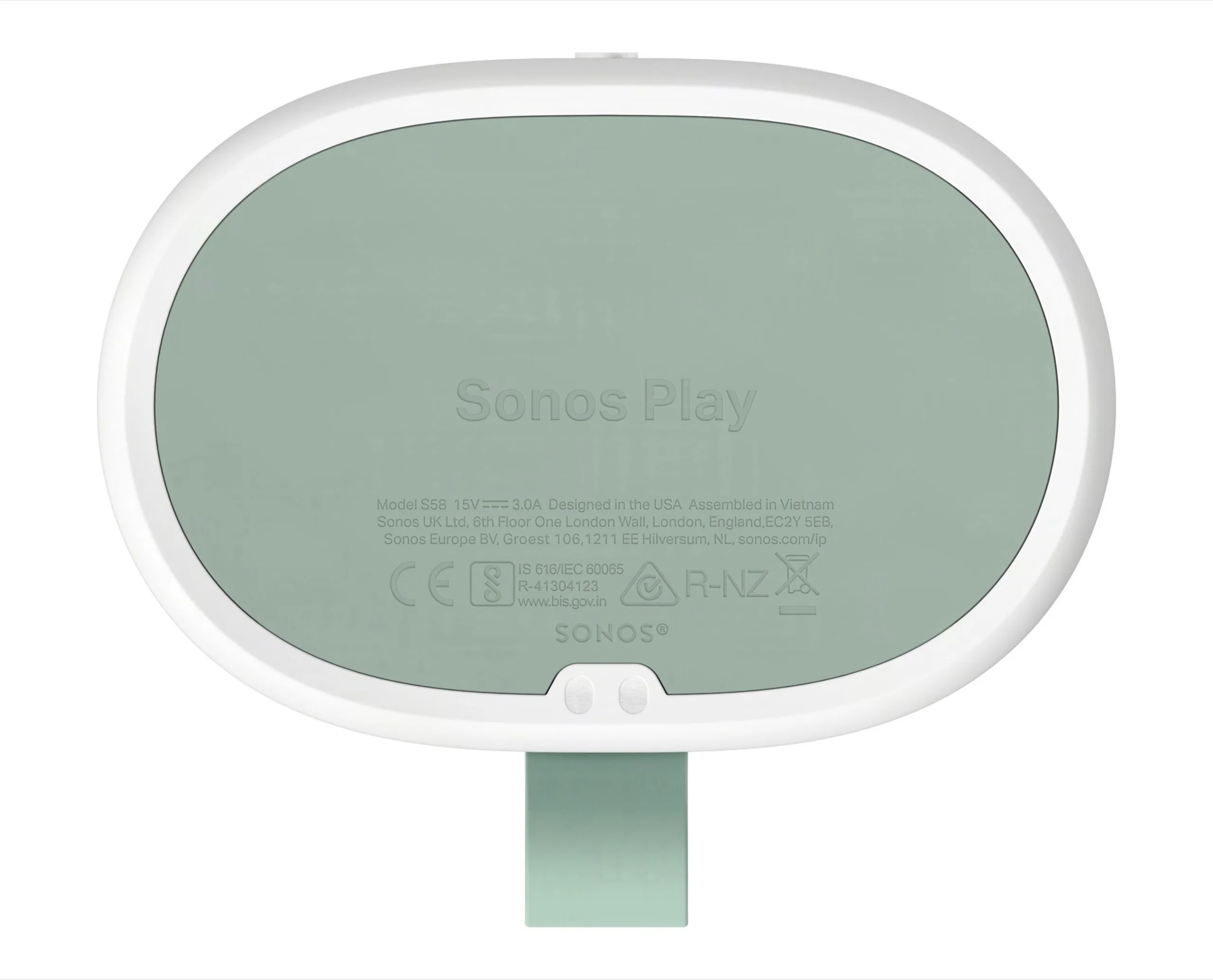 Buttons an der Oberseite steuern die Lautstärke und die Wiedergabe. Sonos Play soll eine Akkulaufzeit von bis zu 24 Stunden erreichen, und über einen USB-C-Anschluss auch Smartphones aufladen können. Der Lautsprecher ist nach IP67 zertifiziert. Während Sonos Play unterwegs als Bluetooth-Lautsprecher mit Akku verwendet werden kann, soll dieser Zuhause auf ein drahtloses Ladedock gestellt werden können, und sich anschließend per Wi-Fi mit dem Heimnetzwerk verbinden, wodurch Apple AirPlay 2 und Sonos Multiraum-Audio-Setups unterstützt werden.