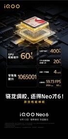 Ein weiterer Teaser lüftet das Geheimnis, wann Vivo das stylische iQoo Neo6 5G-Smartphone in China vorstellen wird: Vivo enthüllt das iQoo Neo6 offiziell am 13. April. Gemäß den bislang releasten Teasern und Infohäppchen wird das iQoo Neo6 über ein 6,62 Zoll großes AMOLED-Display mit Full-HD+-Auflösung, 120 Hz und integriertem Fingerabdrucksensor, Qualcomm Snapdragon 8 Gen 1, 4.700-mAh-Akku und 80 Watt Schnellladen verfügen. Angeboten wird das Neo6 wahlweise mit 8 GByte RAM und 128 oder 256 GByte Systemspeicher, das Neo6-Topmodell verfügt über 12/256 GByte Speicher.