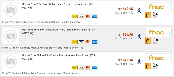 Toppreise.ch, via @fttest_en (Twitter) | WinFuture (Bilder Fenix 7 Pro-Serie)