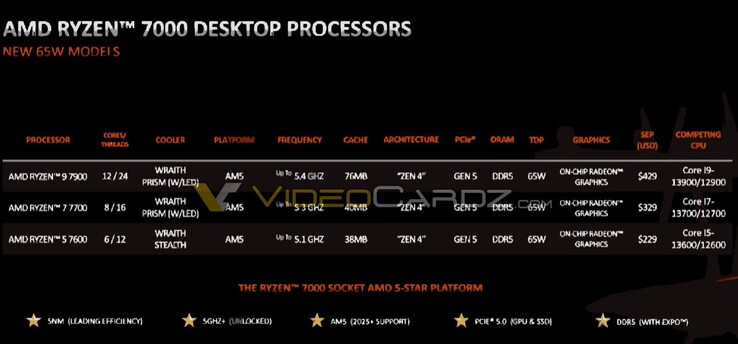 Sowohl AMD als auch Intel werden zur CES im Januar günstigere Desktop-Prozessoren der nächsten Generation vorstellen. VideoCardz konnte nun bereits die Spezifikationen und Preise der drei neuen AMD Ryzen 7000 CPUs in Erfahrung bringen, die offenbar sowohl sparsamer als auch günstiger als ihre Gegenstücke mit einem "X" in der Produktbezeichnung werden.