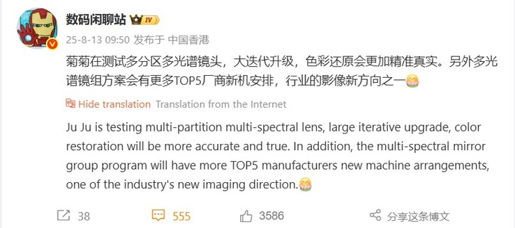 Auch beim Telefoto gibt es wohl größere Änderungen. Statt des bislang einzigartigen Dual-Periskop-Telefotos soll wohl wie beim Vivo X200 Ultra und dem Xiaomi 15 Ultra (hier bei Amazon erhältlich) ebenfalls ein 200 Megapixel Sensor zum Einsatz kommen. Und noch eine Änderung könnte es bei der Hasselblad-Kamera des Jahres 2026 geben: Ein neuer "Multi-Zone" Spektral-Sensor für eine bessere Farbtreue der Aufnahmen. In einem weiteren Post deutete der Leaker an, dass auch andere chinesische Hersteller bei ihren nächsten Kamera-Flaggschiffen auf diese Technologie setzen könnten, etwa Xiaomi, Vivo, Honor oder Huawei.