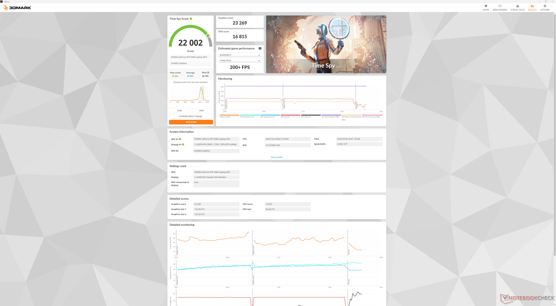 Der Core Ultra 9 275HX bietet eine bessere Leistung pro Watt als der Ryzen 9 9955HX3D; Prime95 zieht auf unserem Lenovo 153 W, verglichen mit 216 W auf dem MSI Raider A18 HX und bietet dabei fast die gleiche Multi-Thread-Rohleistung.