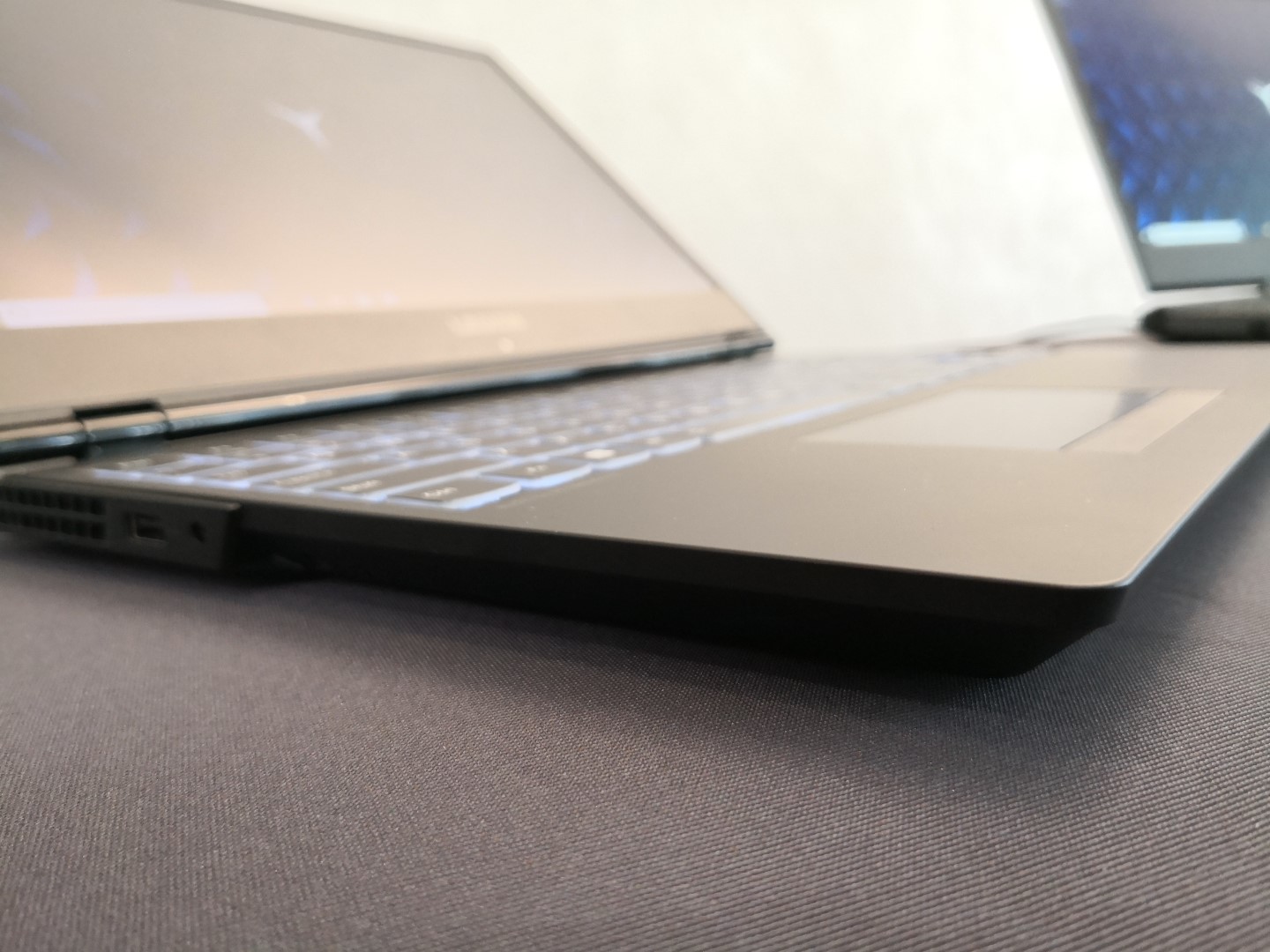 Für das Legion Y730, das das höherpreisige Segment abdecken soll, gibt es die Auswahl zwischen einem 15,6-Zoll- und 17,3-Zoll-Modell. Das Design ist dem des Y530 prinzipiell sehr ähnlich sein, aber es kommen einige spannende Features hinzu: So finden glatte Aluminiumoberflächen anstelle von Kunststoff Verwendung, die Hintergrundbeleuchtung der Tastatur besteht aus einer RGB-LED pro Taste und ist über die Corsair-Software steuerbar, zudem gibt es eine RGB-Beleuchtung auf der Rückseite, einen Thunderbolt-3-Anschluss, einen größeren Akku und eine Reihe von Makro-Tasten, über die sich insbesondere Spieler freuen könnten. Um diese Makro-Tasten zu integrieren, musste Lenovo jedoch den Nummernblock entfernen, der beim Y530 hingegen vorhanden ist.