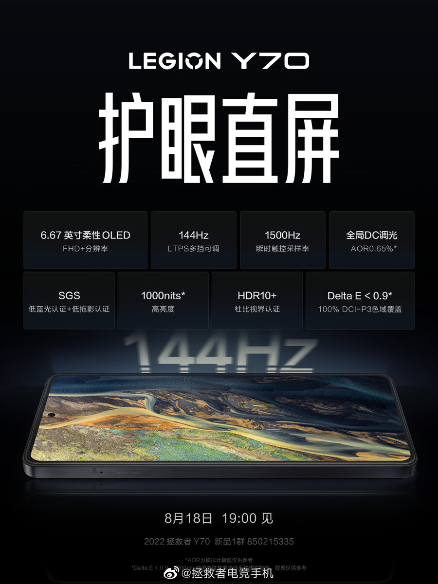 Das 6,67 Zoll große OLED-Display erreicht eine Helligkeit von 1.000 Nits, eine Touch-Abtastrate von 1.500 Hz und eine Bildfrequenz von 144 Hz, DC Dimming soll Flackern verhindern. Das Legion Y70 setzt wie die meisten aktuellen Flaggschiffe auf den Qualcomm Snapdragon 8+ Gen 1, dem maximal 16 GB Arbeitsspeicher und 512 GB Flash-Speicher zur Seite gestellt werden.