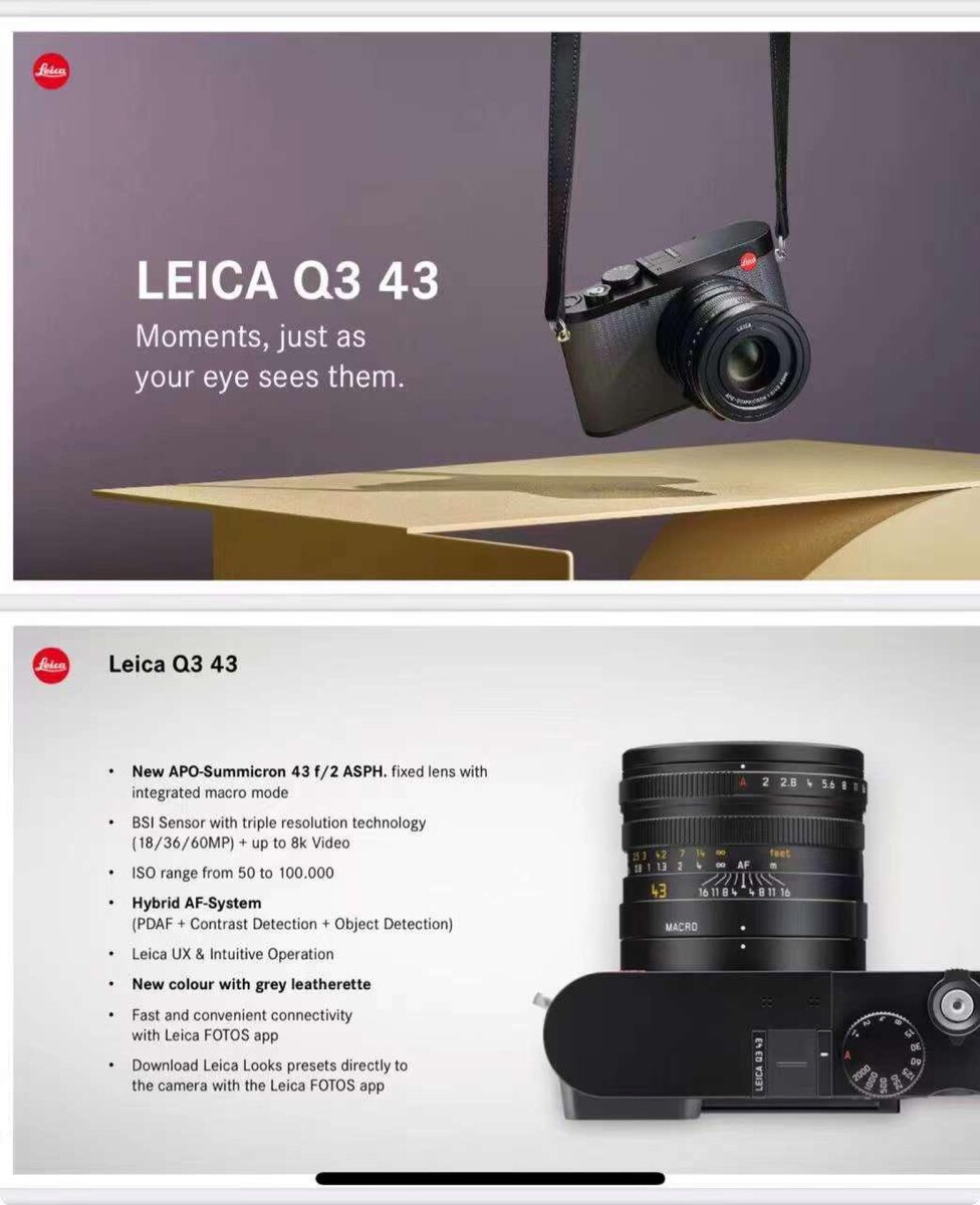 Die Leica Q3 43 wird Gerüchten zufolge am Donnerstag, dem 26. September, offiziell vorgestellt, und soll anschließend für eine unverbindliche Preisempfehlung von 6.800 Euro angeboten werden. Auf Reddit wurden nun bereits erste Bilder der Kamera enthüllt, während Thorsten Overgaard einen Teil eines Testberichts bereits vorab veröffentlicht hat.