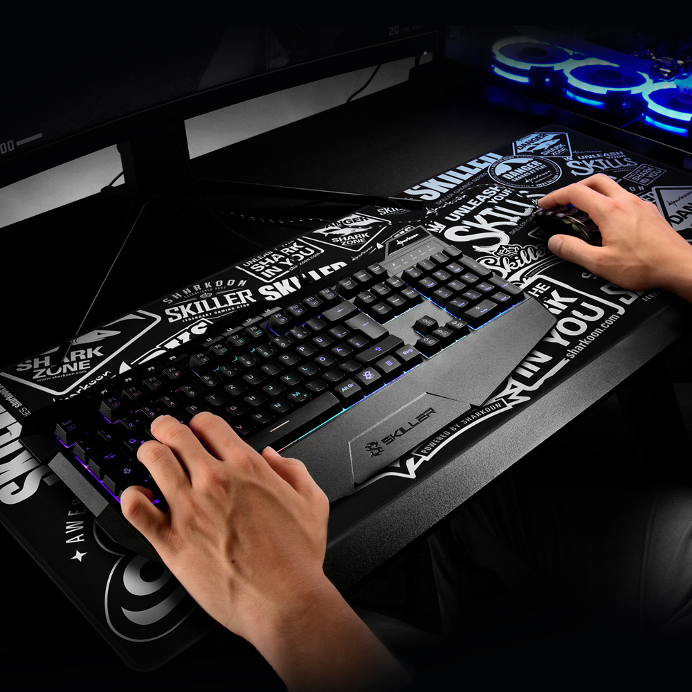 Durch das geringe Gewicht, gepaart mit den sehr guten Gleiteigenschaften, liegt die Maus wirklich leicht in der Hand und schießt anfangs manchmal über das Ziel hinaus, wenn sie über das 90 mal 40 Zentimeter große Skiller SGP2 Mauspad "fetzt".