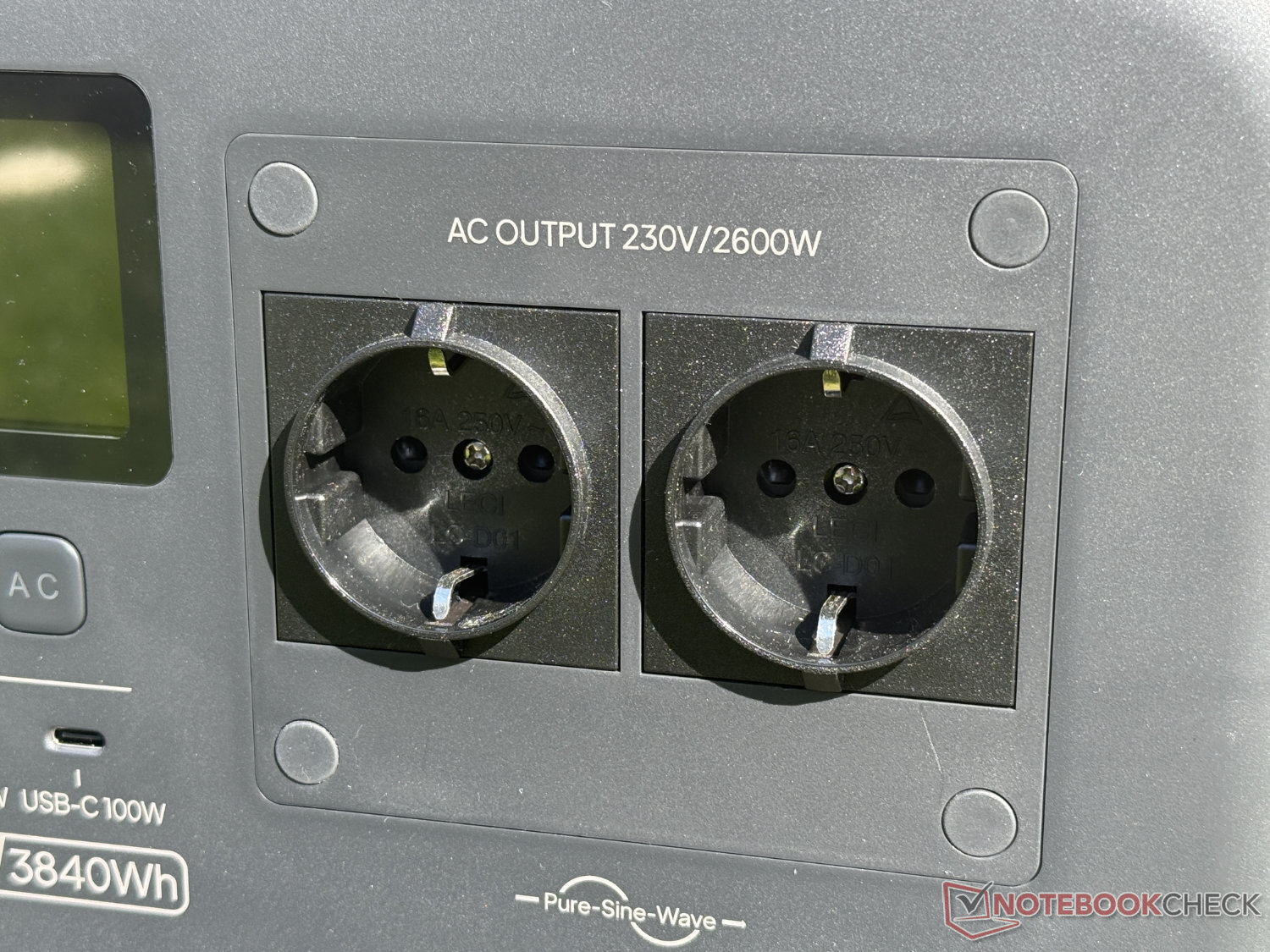 Erkauft hat sich der Hersteller dies durch eine (im Vergleich zu anderen 4-kWh-Powerstations) abgespeckten Ausstattung. Das betrifft nicht nur die AC-Dauerleistung von 2.600 W, sondern auch die Anschlüsse mit beispielsweise nur zwei 230-V-Steckdosen. Für die meisten Anwendungszwecke langt, aber eben nicht für höhere Anforderungen.