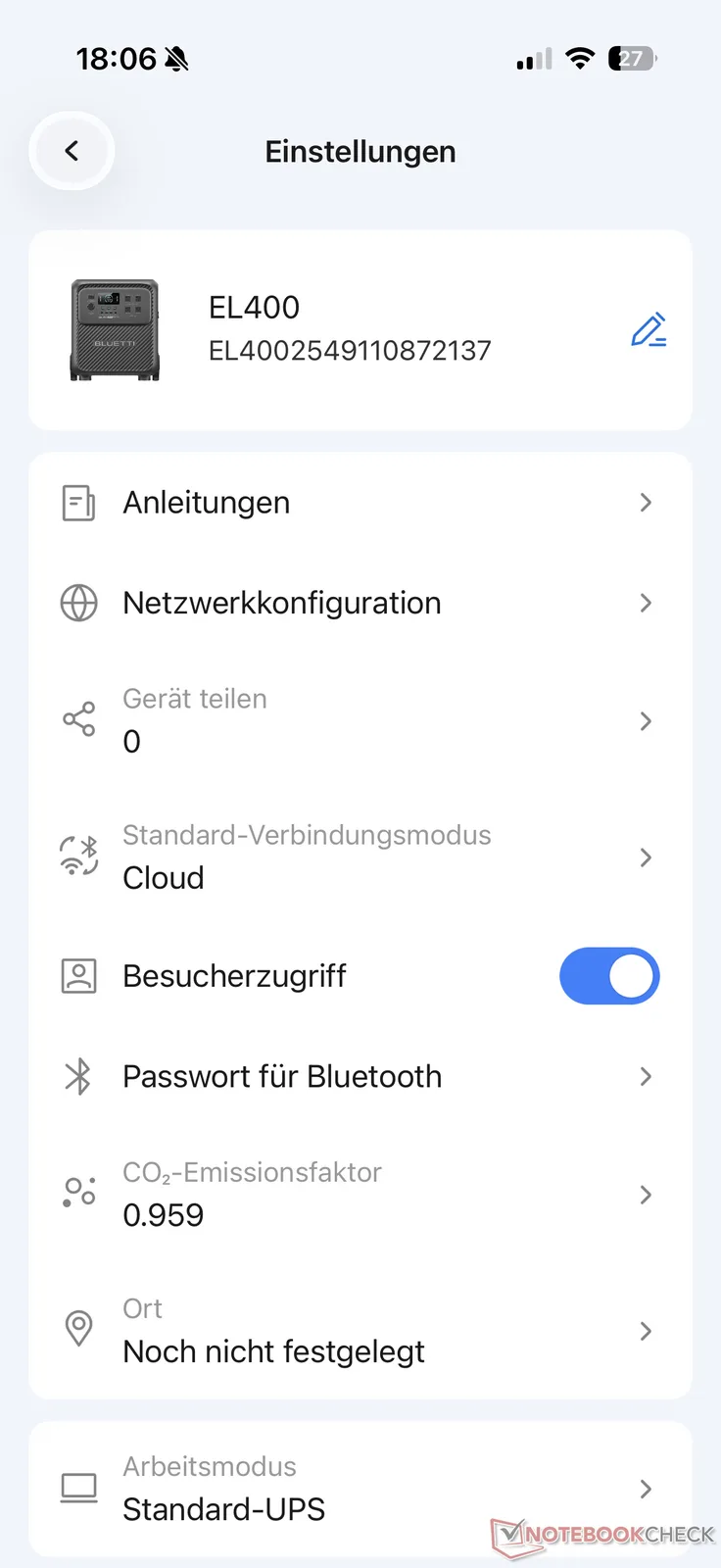 Erst kürzlich sind wir in unserem Elite 300 Test auf die für iOS und Android verfügbare Bluetti App eingegangen. Daher fassen wir uns an dieser Stelle kurz. Der Verbindungsaufbau zwischen Powerstation und App via Bluetooth und WLAN hat im Test der Bluetti Elite 400 problemlos funktioniert.