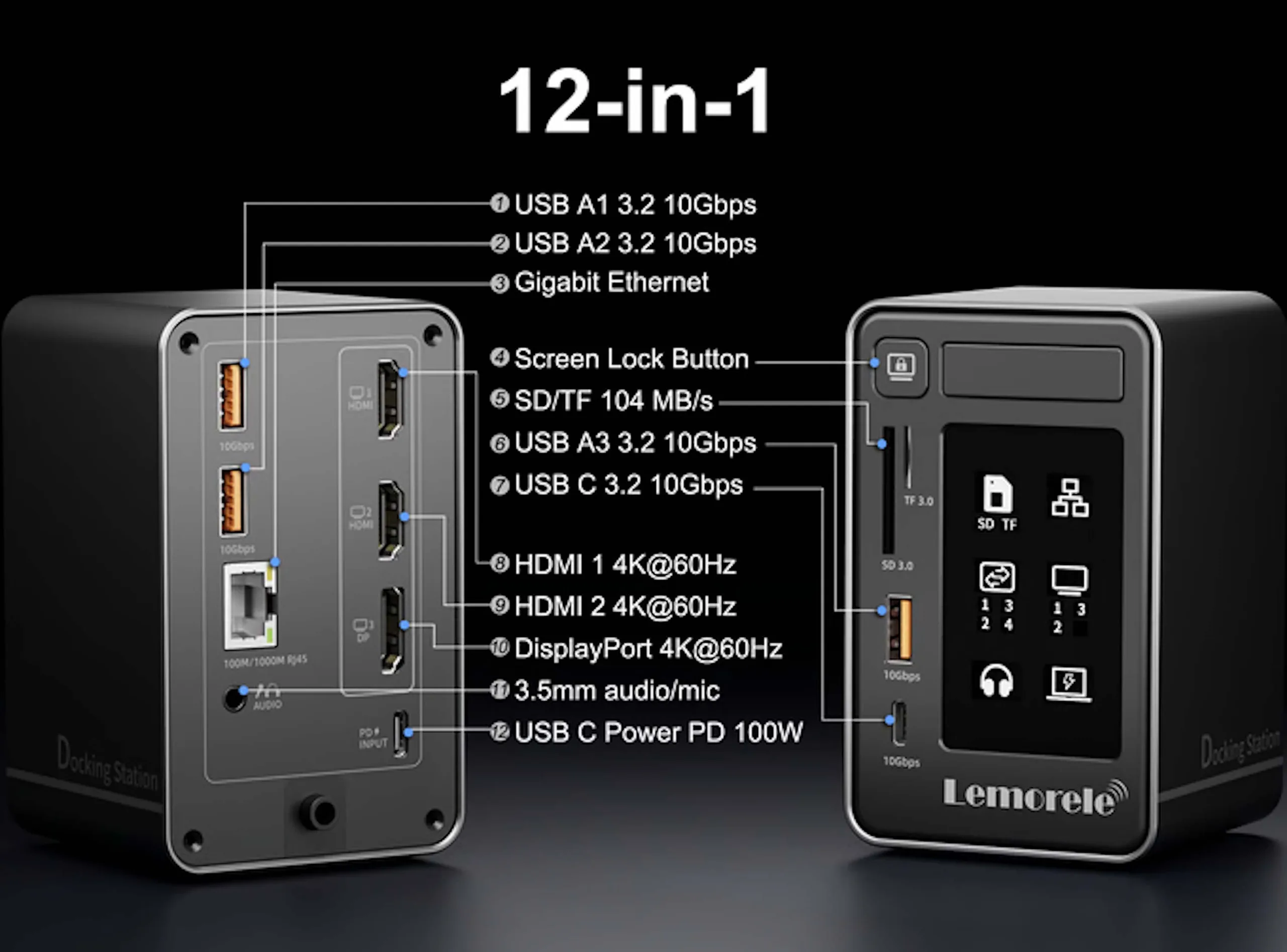 Lemorele TC1000: 12-in-1 Docking-Station mit 3x 4K-Displays für nur 77 Euro