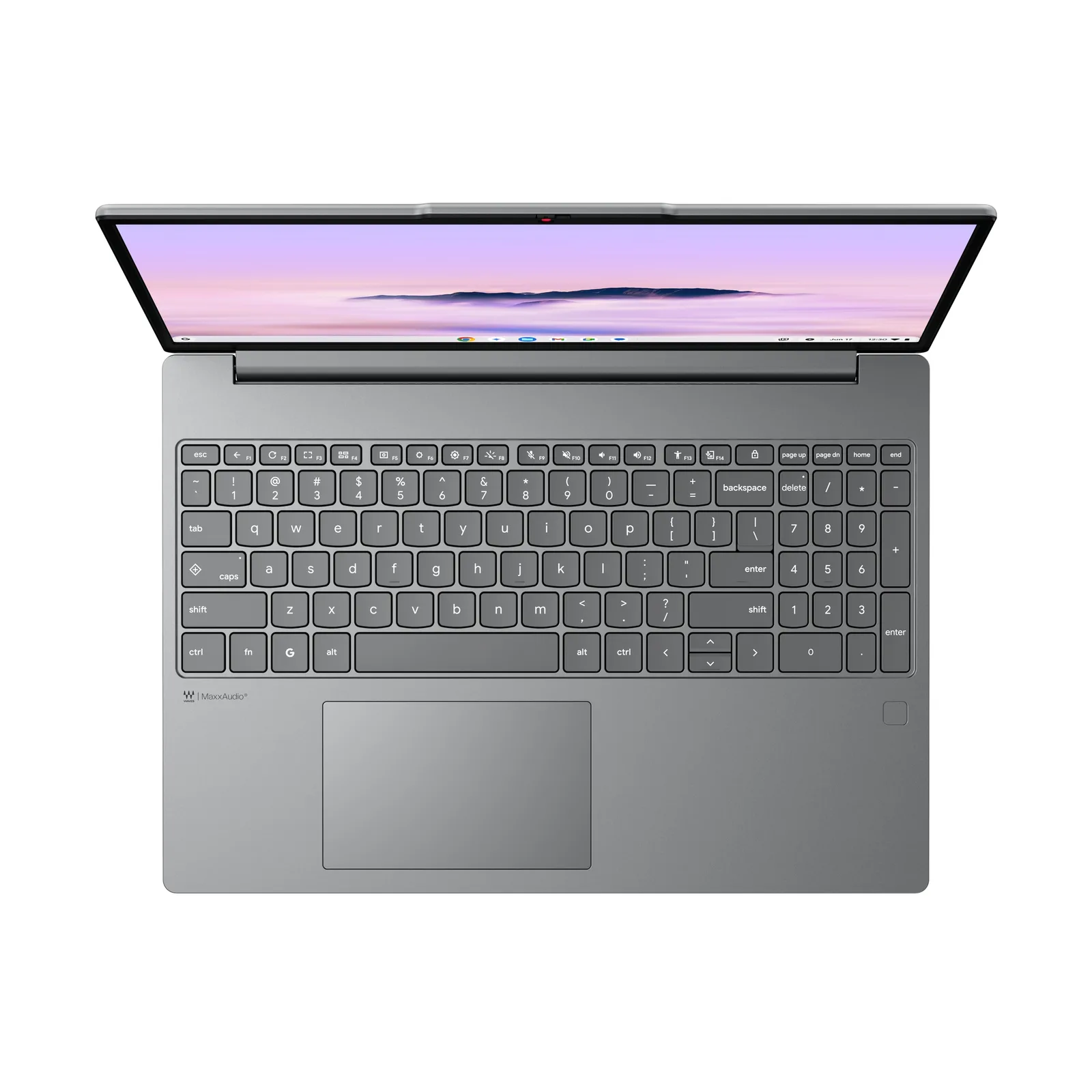 Das Herzstück des neuen Chromebook Plus i 15 ist das 15,3 Zoll große IPS-Display im produktiven 16:10-Format, das mit 1920 x 1200 Pixeln auflöst und mit 400 nits hell genug für den Einsatz in verschiedenen Umgebungen ist. Wer mehr will, kann optional zu einer Variante mit 120 Hz und Touchscreen greifen.