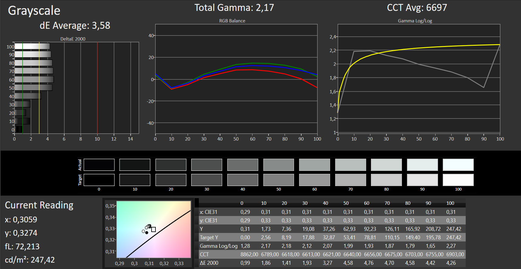 ΔE Greyscale Calman: 3.58 | ∀{0.09-98 Ø5}