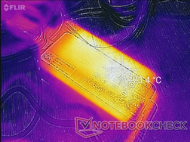 (±) Auf der Unterseite messen wir eine maximalen Wert von 41 °C (im Vergleich zum Durchschnitt von 36.8 °C).