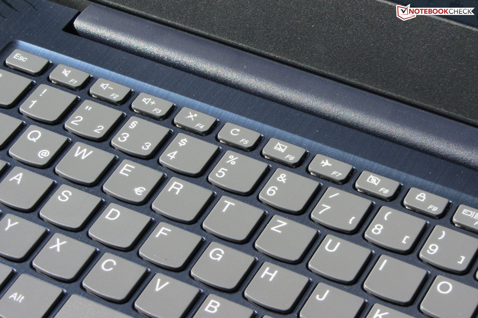 Lenovo stattet das Ideapad mit einer unbeleuchteten Chiclet-Tastatur aus. Die flachen, leicht angerauten Tasten verfügen über einen kurzen Hub und einen klaren Druckpunkt. Der Tastenwiderstand dürfte knackiger ausfallen. Während des Tippens gibt die Tastatur leicht nach. Als störend hat es sich nicht erwiesen. Alles in allem liefert Lenovo hier eine alltagstaugliche Tastatur.
