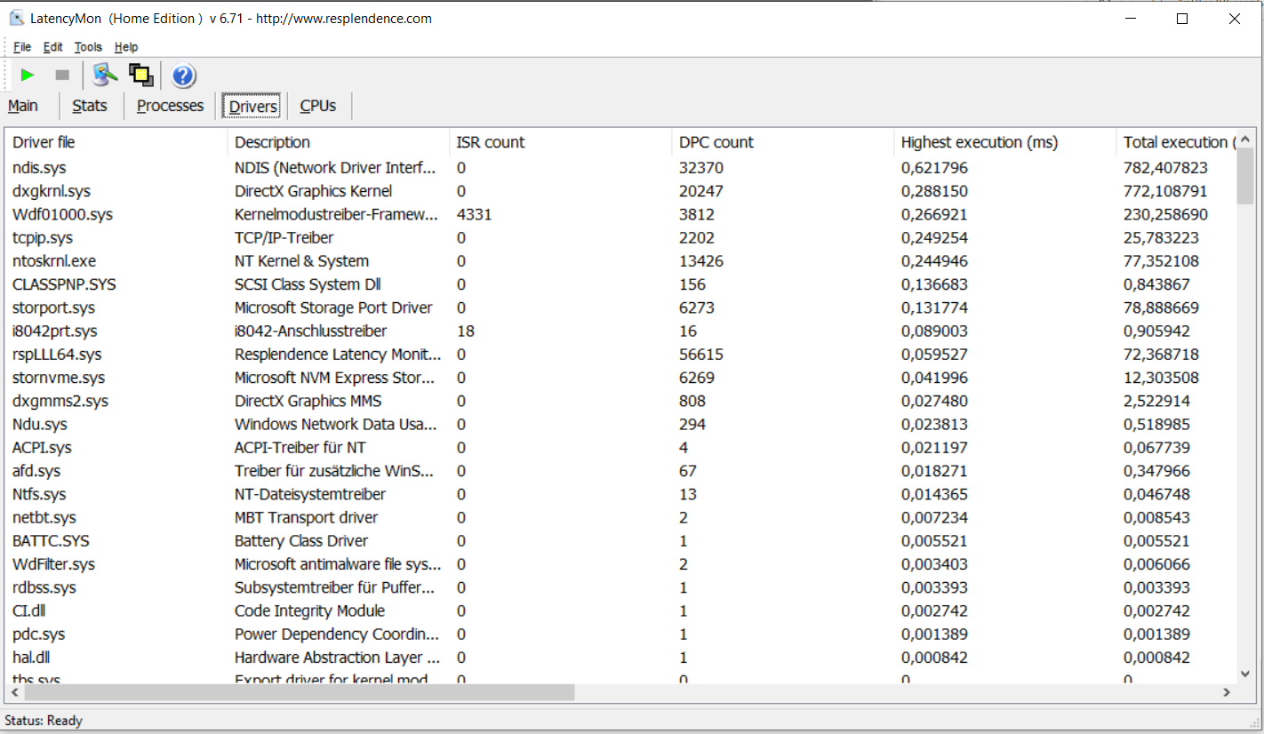 | DPC Latencies / LatencyMon - interrupt to process latency (max), Web, Youtube, Prime95 | |