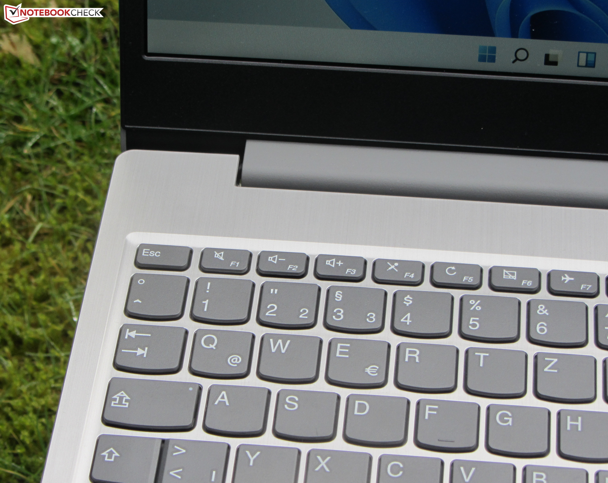 Die ebenen, leicht angerauten Tasten der unbeleuchteten Chiclet-Tastatur verfügen über einen kurzen Hub und einen klaren Druckpunkt. Während des Tippens gibt die Tastatur leicht nach. Als störend hat es sich nicht erwiesen. Alles in allem liefert Lenovo hier eine alltagstaugliche Tastatur.