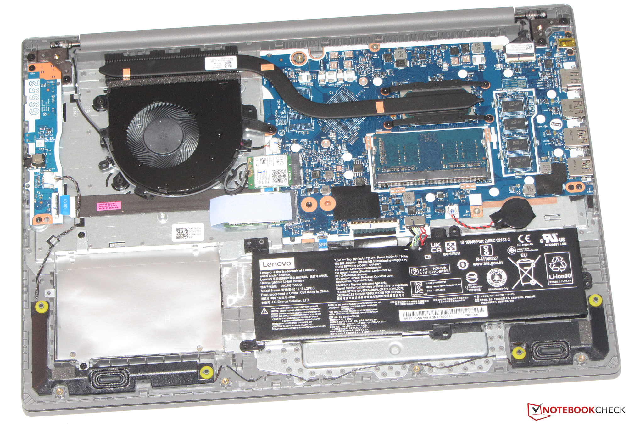 Core-i3-1115G4-CPU, 8 GB Arbeitsspeicher (Dual-Channel-Modus; 4-GB-Modul + 4 GB Onboard) und eine 256-GB-NVMe-SSD (M.2-2242) rüsten das Notebook für den Office- und Internetbetrieb. Das Ideapad produziert relativ wenig Lärm und erwärmt sich kaum.