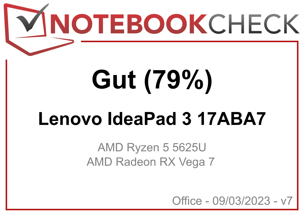 Das IdeaPad 3 17ABA7 - ein Office-Notebook im 17,3-Zoll-Format - wird von einer Ryzen-5-5625U-APU (Barcelo) der Firma AMD angetrieben und ist zum Testzeitpunkt ab etwa 729 Euro zu bekommen. Erst kürzlich wurde mit dem IdeaPad 3 15ABA7 ein nahezu identisch ausgestattetes 15,6-Zoll-Schwestermodell getestet. Zur Konkurrenz zählen Geräte wie das Asus VivoBook 17 F712JA und das Acer Aspire 5 A517-52G.