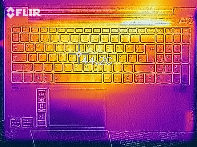 Ohne große Forderung erwärmt sich das Lenovo IdeaPad 5 15ALC05 kaum über Raumtemperatur. Unter Last erreicht es Temperaturen von knapp über 40 Grad. Die höchsten Werte messen wir an der Oberseite mittig vor dem Display. Das ist auch nicht weiter verwunderlich, schließlich wird dort im Bereich des Scharniers per Lüfter die heiße Luft durch die Lüftungsschlitze nach draußen transportiert.