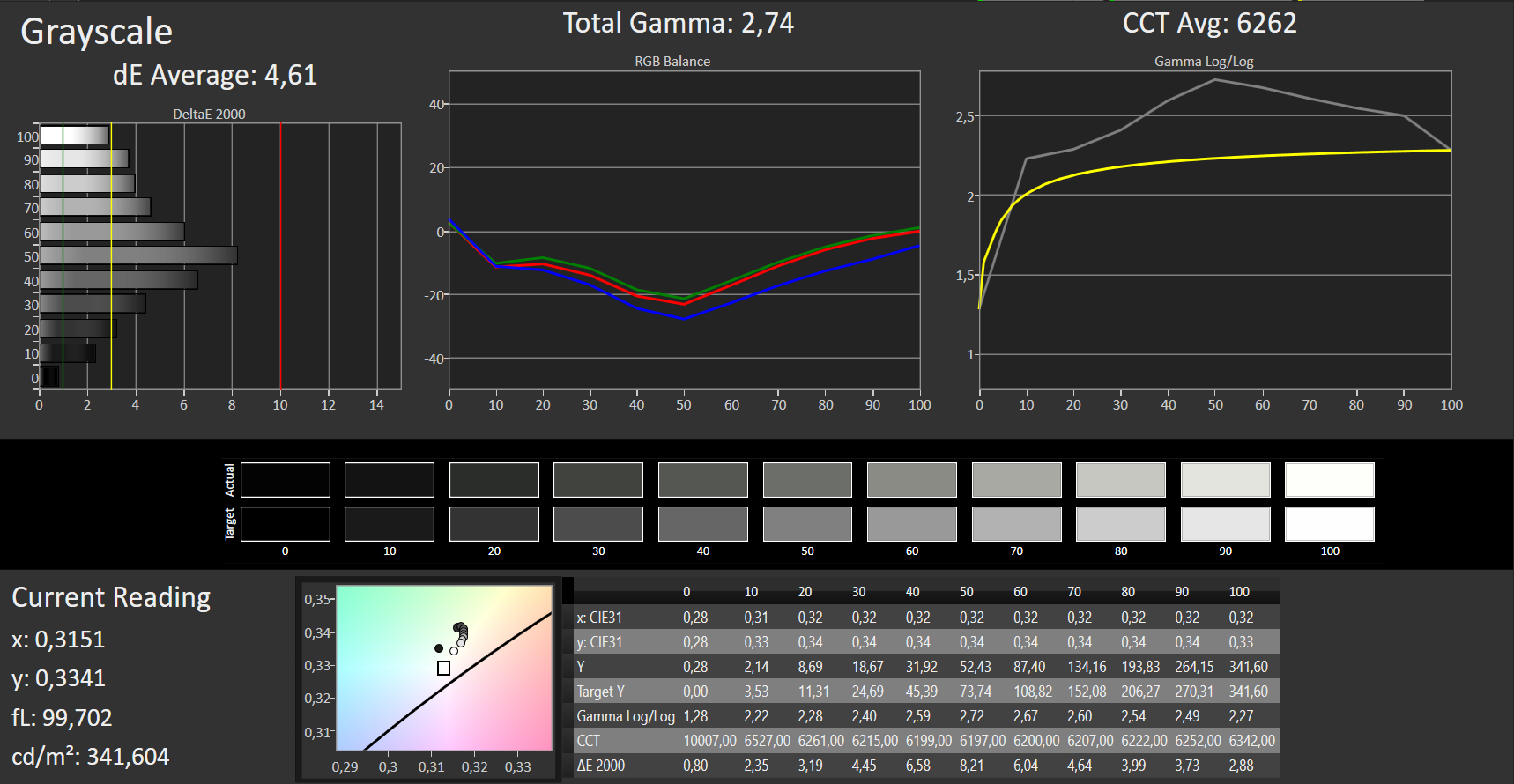 ΔE Greyscale Calman: 4.61 | ∀{0.09-98 Ø5}
