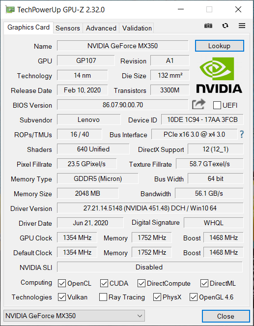 | 83 % v7 (old) | 07 / 2020 | Lenovo IdeaPad 5 15IIL05 i5-1035G1, GeForce MX350 | 1.7 kg | 17.9 mm | 15.60" | 1920x1080 | |