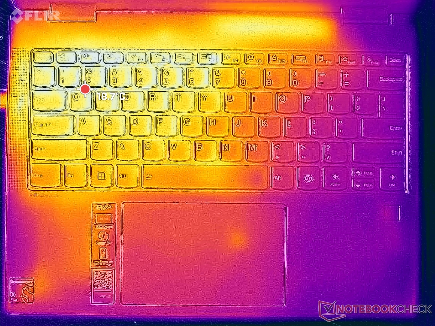 (+) Die Handballen und der Touchpad-Bereich sind mit gemessenen 22 °C kühler als die typische Hauttemperatur und fühlen sich dadurch kühl an.