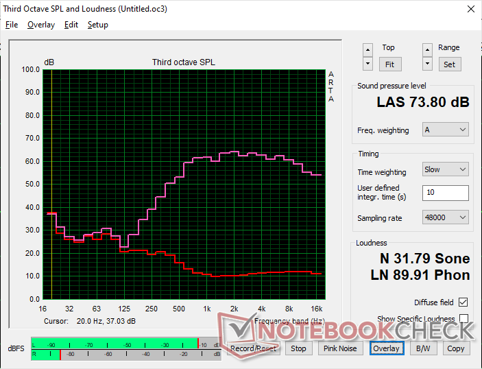 (+) | Die Lautsprecher können relativ laut spielen (84.7 dB)