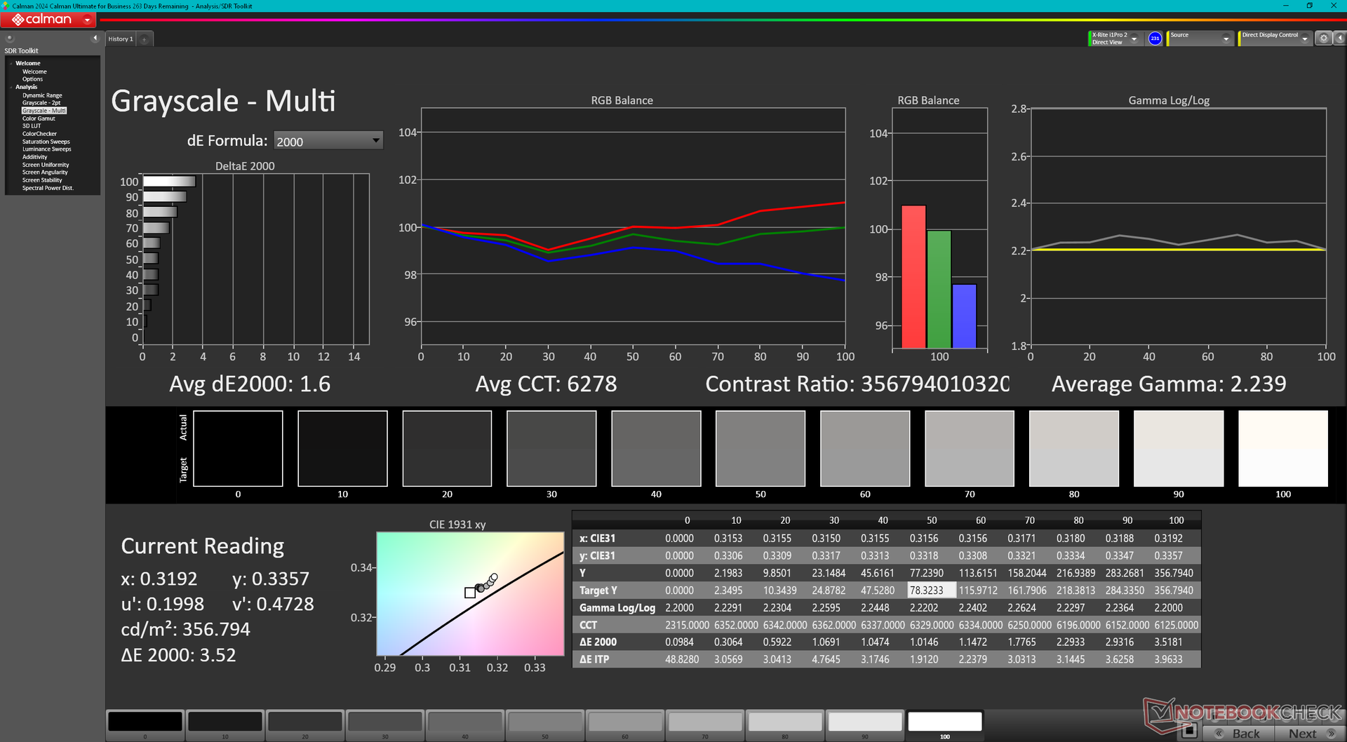 ΔE Greyscale Calman: 1.6 | ∀{0.09-98 Ø5}