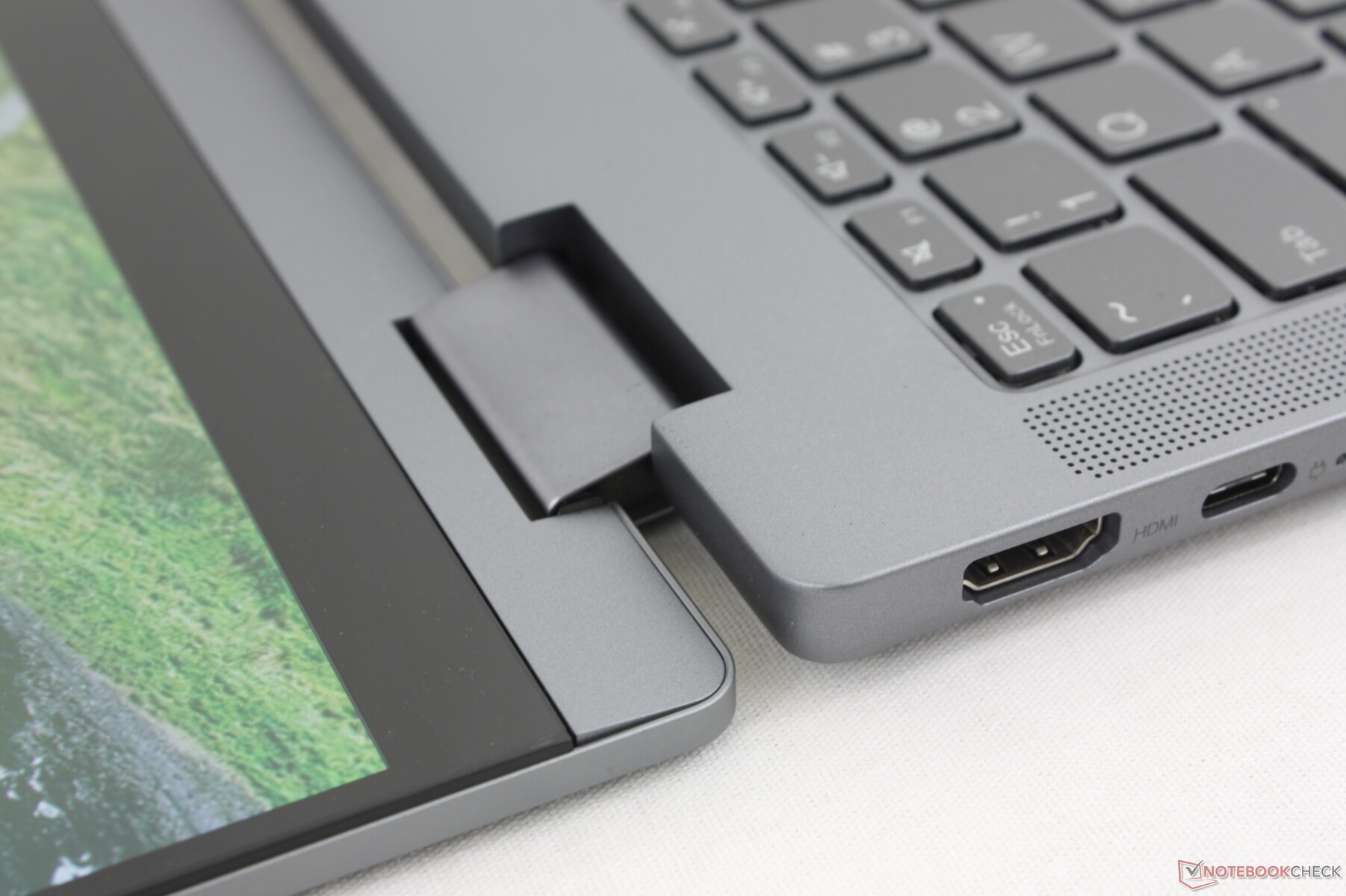 Die Anschlussoptionen sind identisch mit denen der Intel- und AMD Versionen des IdeaPad 5 2-in-1 14, allerdings ohne Unterstützung für Thunderbolt-Geräte wie eGPUs. Nichtsdestotrotz schätzen wir die Vielfalt der verfügbaren Ports, ohne dass man auf umständliche Adapter angewiesen ist.