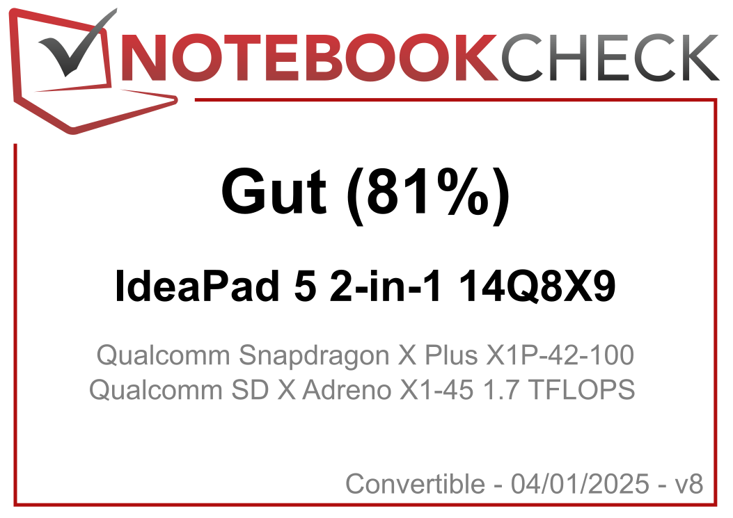 Das IdeaPad 5 2-in-1 14Q8X9 ist eines der günstigsten Convertibles auf dem Markt und läuft mit einem Qualcomm-Snapdragon-X-Plus-Prozessor. Seine Leistung lässt jedoch selbst unter Berücksichtigung des niedrigen Einstiegspreises zu wünschen übrig.Allen Ngo, 👁 Allen Ngo, ✓ Stefanie Voigt (übersetzt von DeepL / Ninh Duy) Veröffentlicht am 🇺🇸 🇫🇷 ...