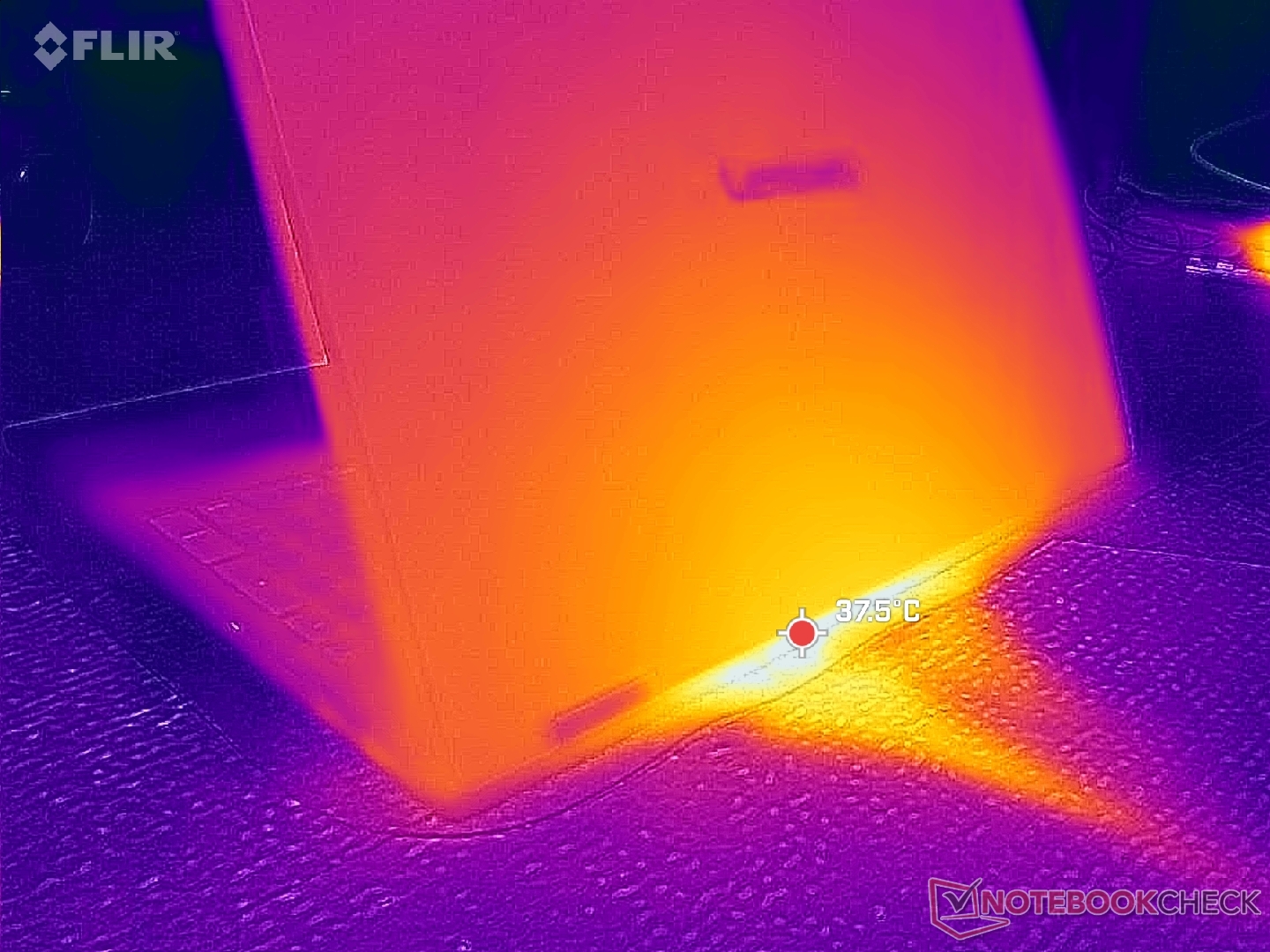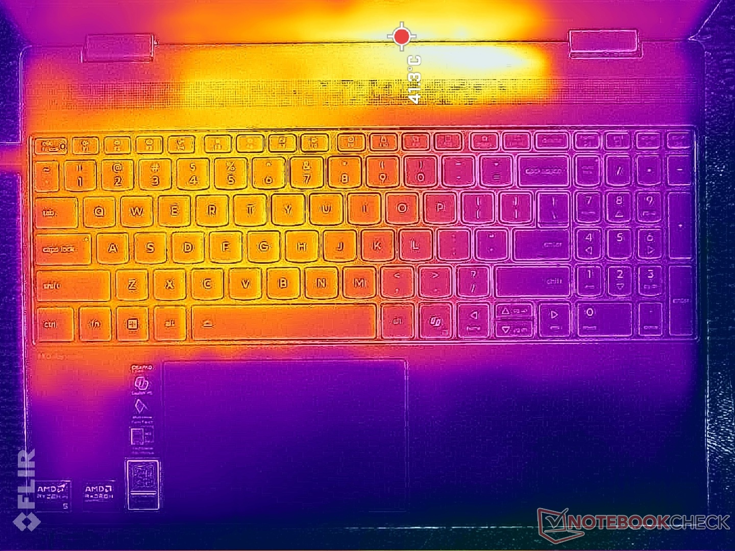 (+) Die Handballen und der Touchpad-Bereich sind mit gemessenen 26.8 °C kühler als die typische Hauttemperatur und fühlen sich dadurch kühl an.