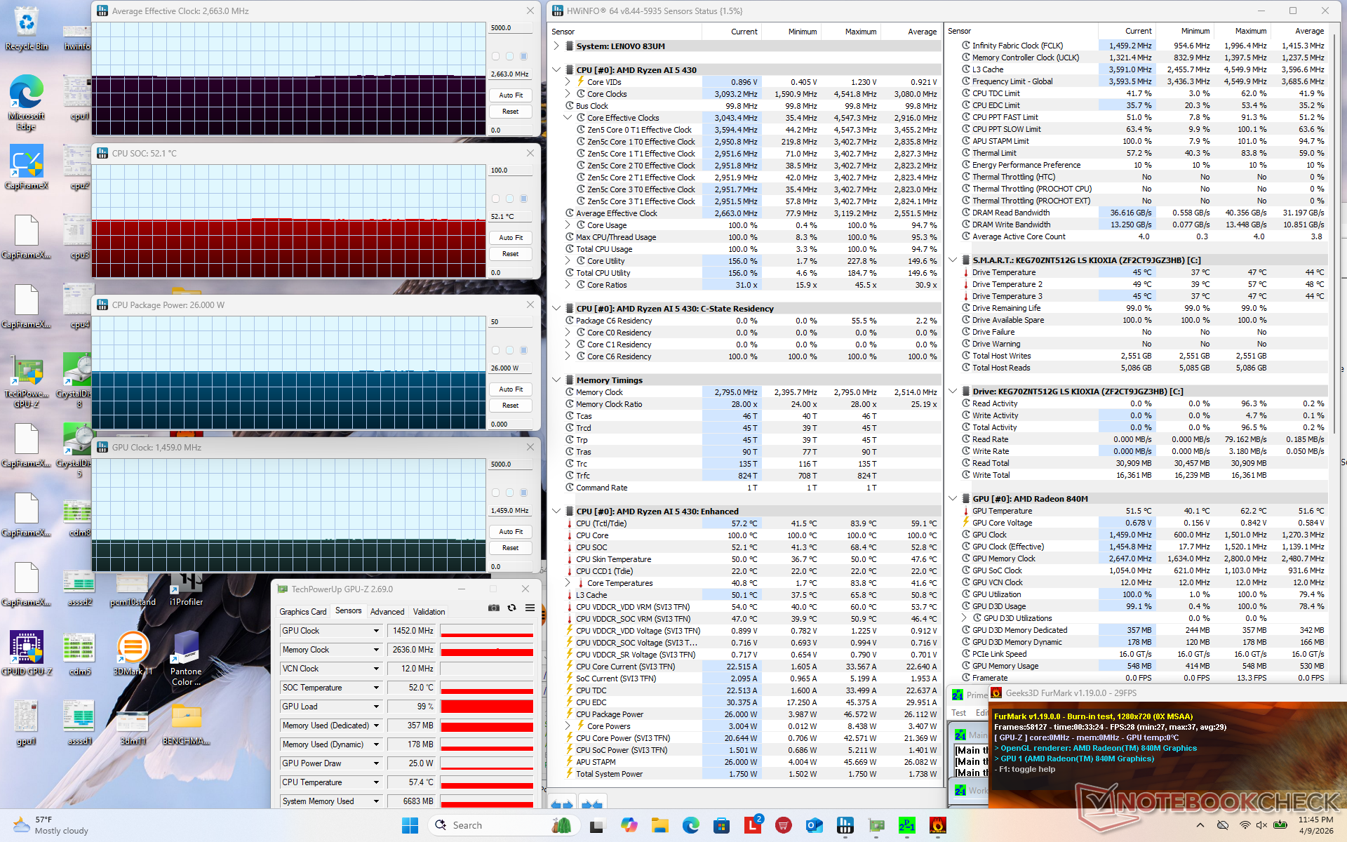 | Prime95 + FurMark Stress | 2,7 | 1.459 | 52 |
