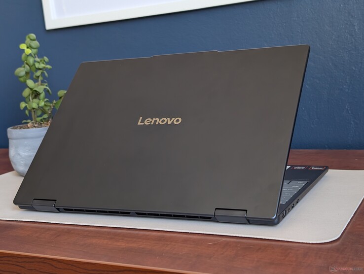 Das Gehäuse besteht aus Aluminium auf der Oberseite und ABS-GF oder glasfaserverstärktem Kunststoff für die Unterseite und macht angesichts des Einstiegspreises einen soliden ersten Eindruck. Allerdings ist die Unibody-Farbe optisch langweilig, und die Unterseite lässt sich etwas leichter biegen als bei einem höherwertigen Yoga Pro oder bei der Yoga-7-Alternative.