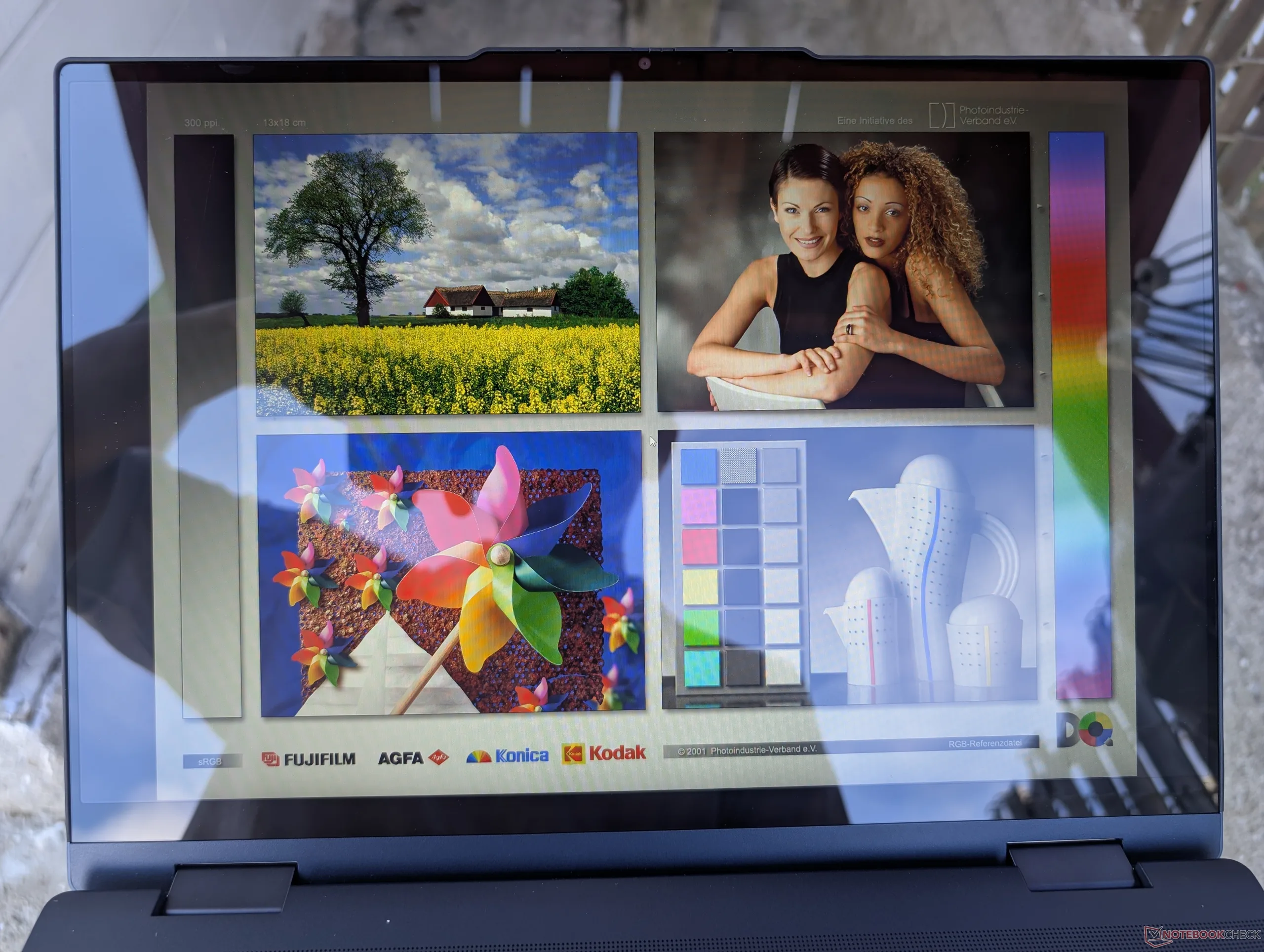 Das Display wird nicht kalibriert geliefert, wie es für ein Budget Convertible mit begrenzter sRGB-Abdeckung zu erwarten ist. Wir konnten durchschnittliche Graustufen- und Farb-DeltaE-Werte von 1,8 bzw. 2,93 erreichen, als wir das Panel selbst kalibrierten.