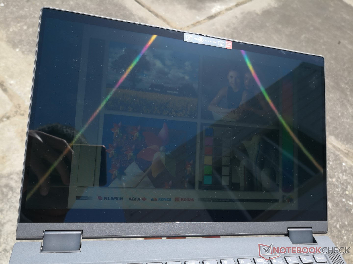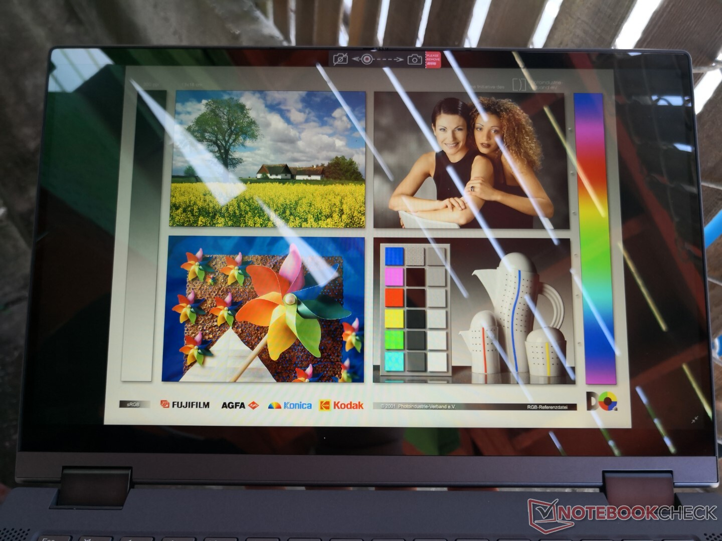 Das Display ist vermutlich das größte Unterscheidungsmerkmal zwischen der IdeaPad- und der Yoga-Serie. Die visuelle Qualität ist beim IdeaPad ein ganzes Stück schlechter, was sich vor allem an der verringerten Maximalhelligkeit, der geringeren Farbraumabdeckung und den schlecht kalibrierten Farben festmachen lässt. Für tägliches Surfen, Schreiben oder gelegentliches Gaming ist es ausreichend, wer jedoch Prioritäten in der Bildbearbeitung, Sichtbarkeit im Freien und reichere Farben setzt, sollte sich eher bei den teureren Yoga-Convertibles umschauen.