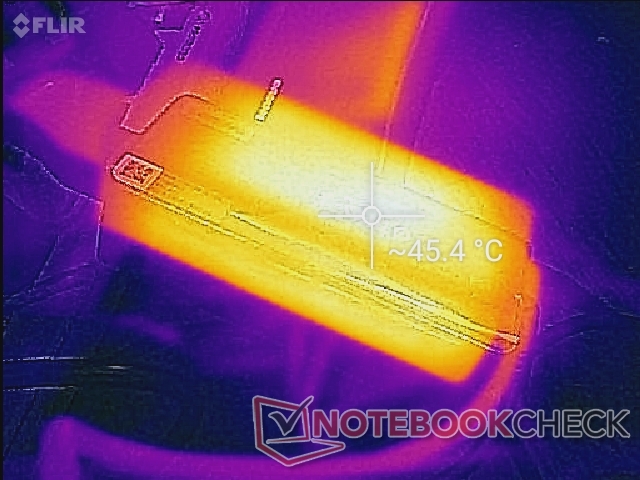 (±) Auf der Unterseite messen wir eine maximalen Wert von 42.8 °C (im Vergleich zum Durchschnitt von 36.8 °C).
