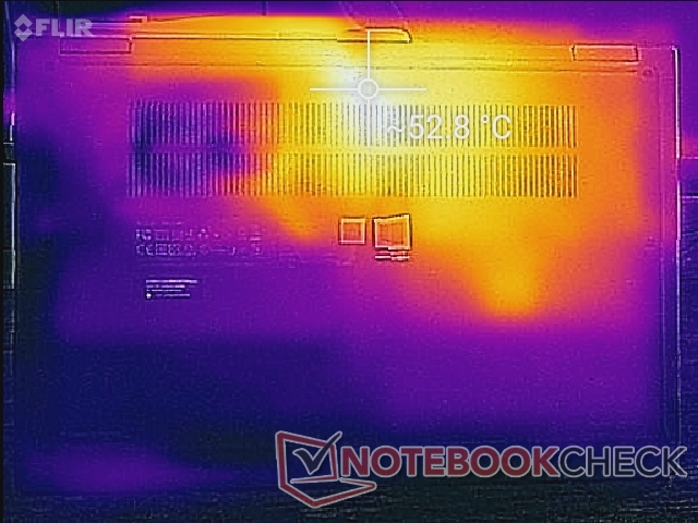 (-) Die maximale Temperatur auf der Oberseite ist 52.8 °C. Im Vergleich liegt der Klassendurchschnitt bei 35.3 °C (von 19.6 bis 60 °C für die Klasse Convertible).
