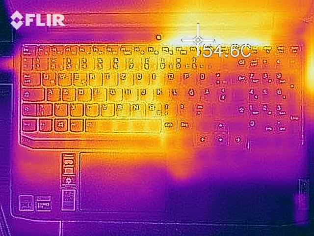 Alles in allem fällt die Erwärmung des Notebooks moderat aus. Während des Stresstests registrieren wir an einem Messpunkt eine Temperatur knapp oberhalb von 50 Grad Celsius. Etwas geringer fällt die Erwärmung bei der Durchführung des Witcher-3-Tests aus. Im Alltagsbetrieb bewegen sich die Temperaturen im grünen Bereich.