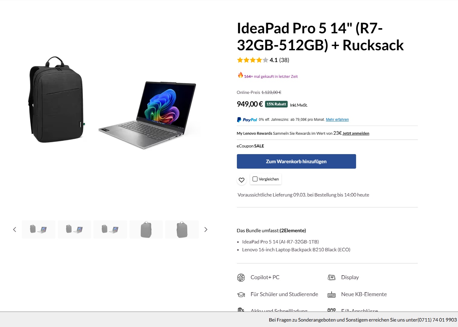 Lenovo hält mit der IdeaPad-Pro-5-Reihe eine Serie von Multimedia-Notebooks bereit, die primär für Schüler und Studenten sowie Kreativ-Arbeiter gemacht sind. Aktuell führt der Lenovo Store ein Bundle bestehend aus einem gut ausgestatteten, AMD-basierten 14-Zoll-Modell der Reihe (IdeaPad Pro 5 14AKP10 83JL0016GE) und einem Laptop-Rucksack (Lenovo B210) zu einem Angebotspreis von 949 Euro im Sortiment. Der Laptop beendete unseren Test mit der Note „Gut (87 %)“.