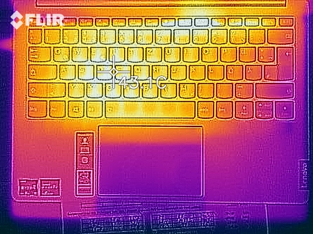 Unter maximaler Last ergibt sich ein Hotspot von rund 39 °C, ein wirklich guter Wert, bei dem nur das Acer Swift 3 mithalten kann, alle anderen Konkurrenten werden heißer. Die Hitze entsteht vor allem im zentralen und linken Bereich zum Display hin, die Handballenauflagen bleiben stets kühl.