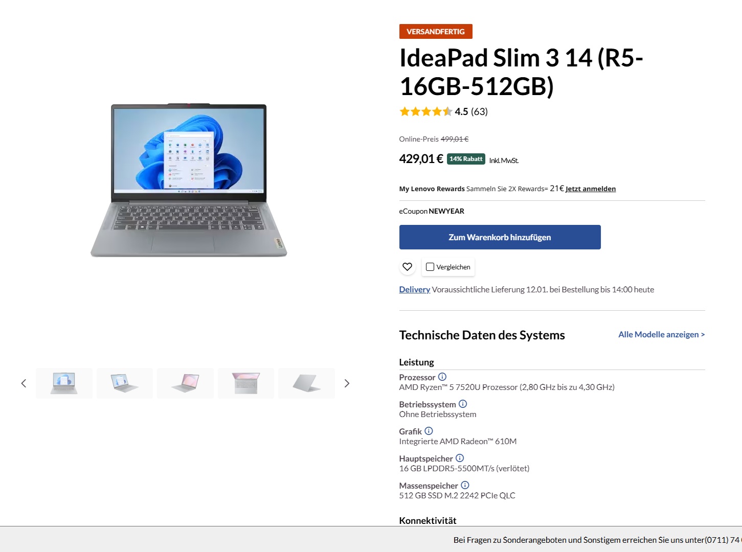 Der Lenovo Store führt aktuell mit dem IdeaPad Slim 3 14AMN8 (82XN009RGE) ein einfaches, AMD-basiertes Office-Notebook im 14-Zoll-Format zu einem Preis von 429,01 Euro im Sortiment, das eine gute Figur als mobile Schreib-, Surf- und Streamingmaschine abgeben dürfte Der Rechner musste sich bisher noch keinem unserer Tests stellen.
