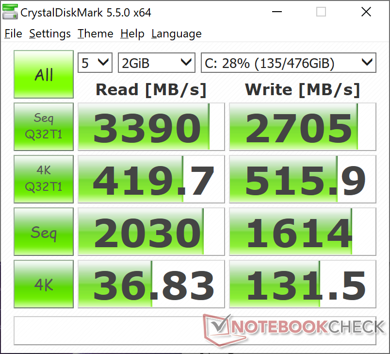 Läuft das Gerät im Akkumodus, verringert sich die CPU-Leistung leicht. Ein 3DMark 11 im Akkubetrieb ergibt Physics- und Graphics-Ergebnisse von 10.713 bzw. 6.748 Punkte im Vergleich zu 12.116 bzw. 6.759 Punkten im Netzbetrieb.