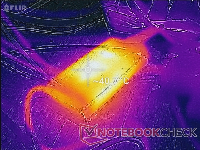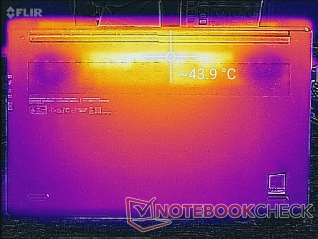 (±) Auf der Unterseite messen wir eine maximalen Wert von 44 °C (im Vergleich zum Durchschnitt von 39.2 °C).